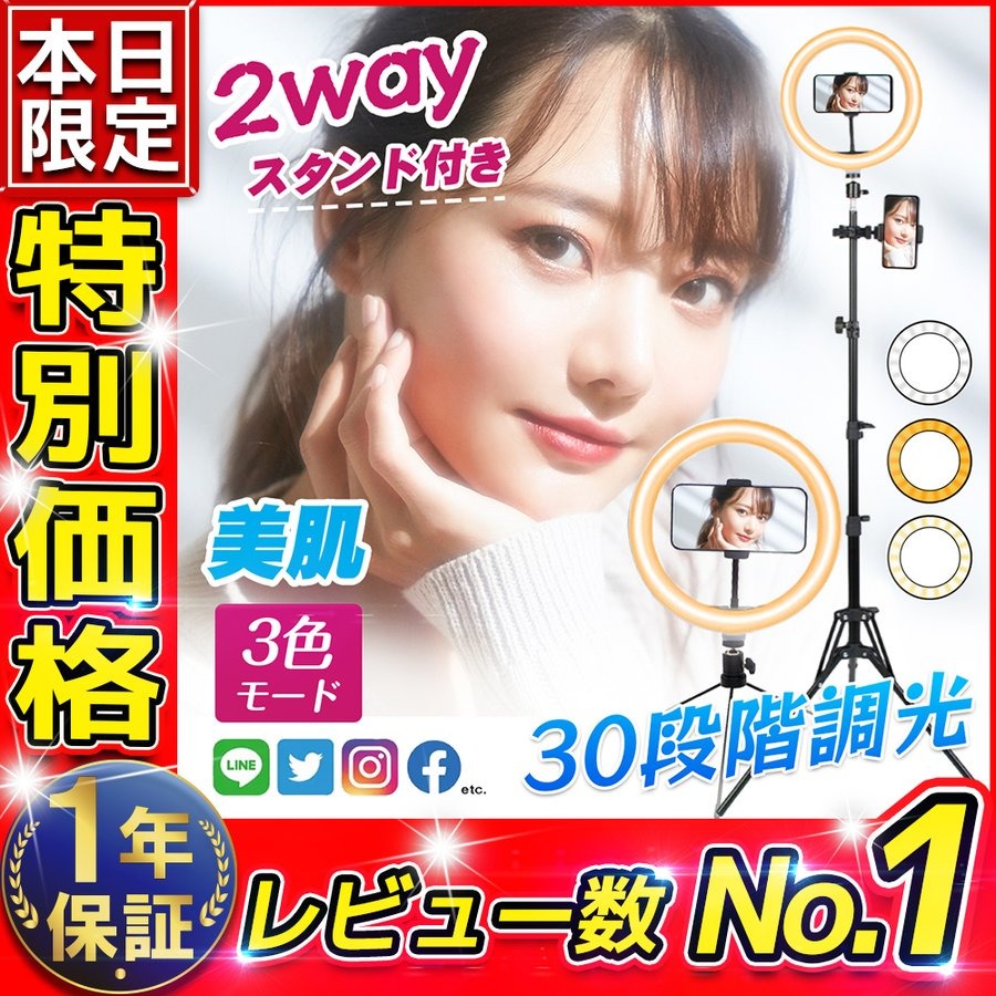 | メリット | 安いのに機能は他製品に劣らない | 最大1,000ルーメンの明るさ | 30段階の色温度調整で見映えを良くできる | アルミ合金製の台座で安定感抜群 | 顔に暗い部分ができにくい | リングが大きい。安定感がある。 |
